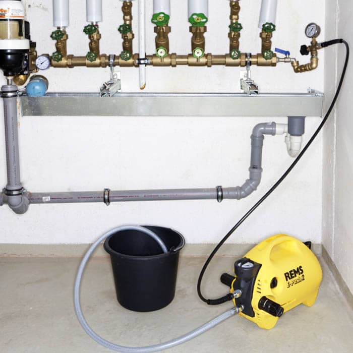 Petite et performante, la pompe d’épreuve REMS E-PUSH 2 permet de remplir et de tester les installations sans efforts et en toute sécurité.