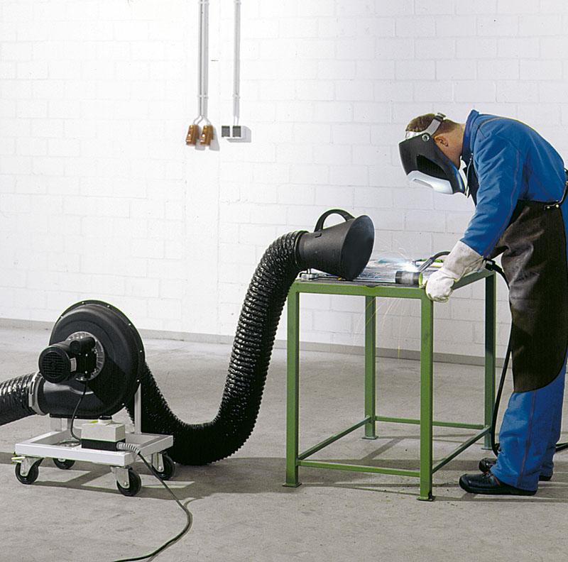 Les avantages du ventilateur mobile sont la construction basse et le poids léger, permettant ainsi une utilisation très flexible. En combinaison avec flexible d’aspiration, le ventilateur mobile est adapté pour les lieux de travail difficiles d’accès (p.ex. dans le domaine de la construction navale).
